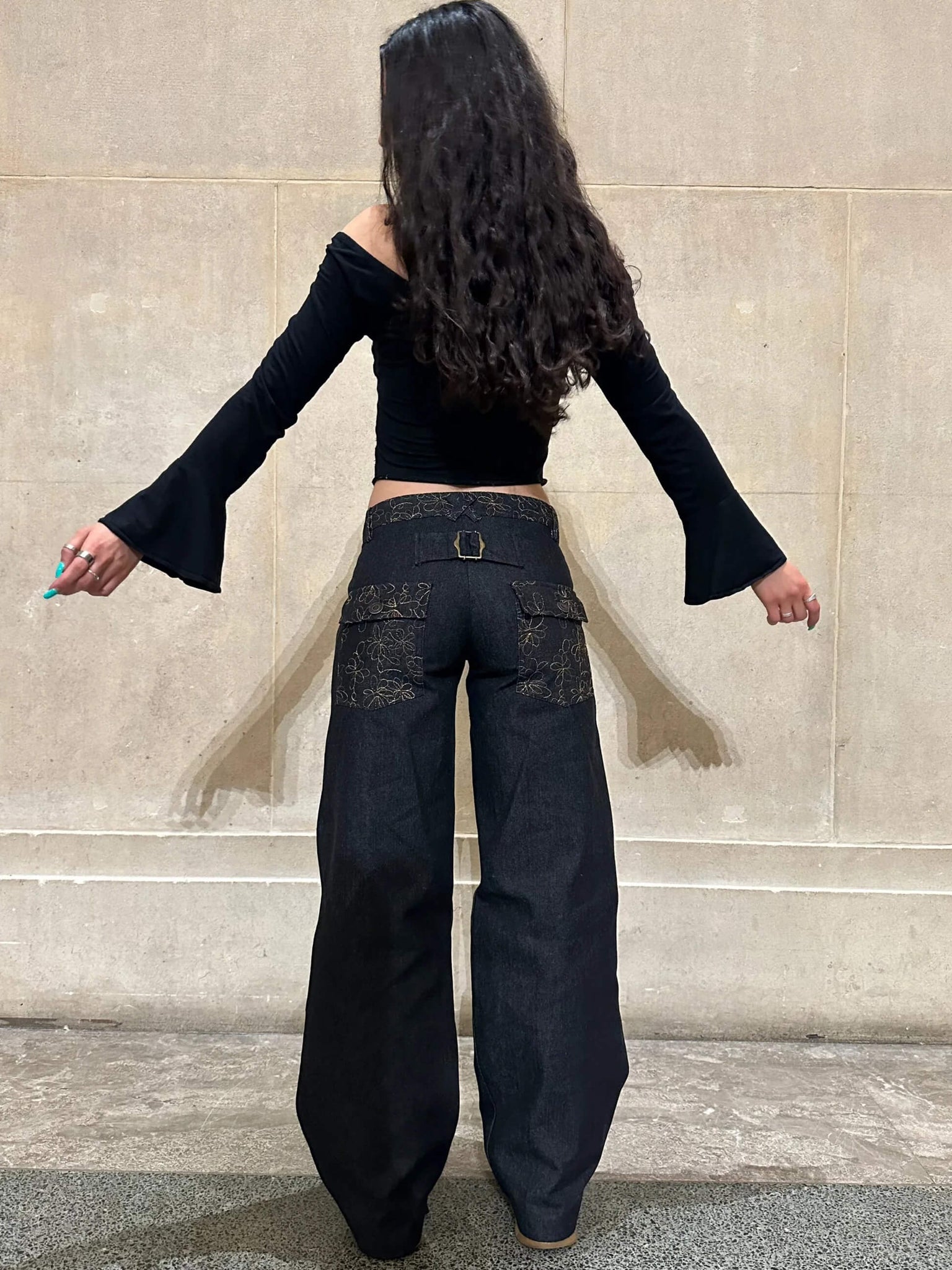 The Slouch In Embroidered Charcoal Denim Jeans