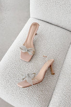 Introducing the Jasmina Heel by Billini¡ªa stunning choice for those who love to make a statement. Featuring a mid-kicked stiletto heel and an open square toe, these heels are both chic and contemporary. The clear vinyl toe strap elegantly showcases a statement oversized diamante mesh bow, adding a touch of glamour.