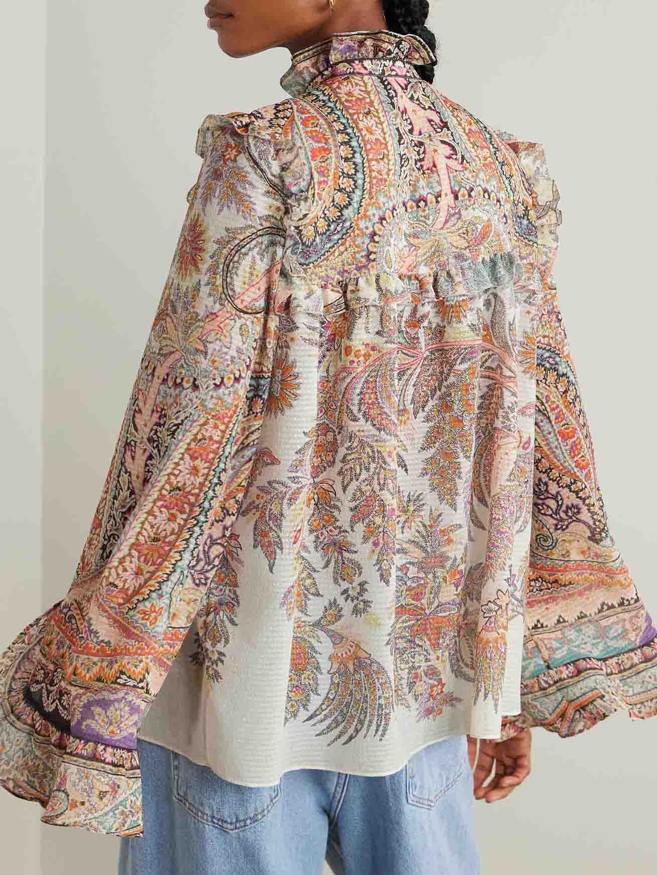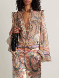 Exquisite Vintage Paisley Print Ruffled Shirt