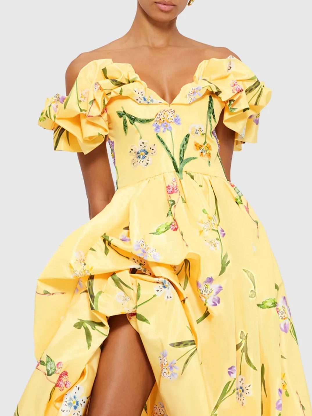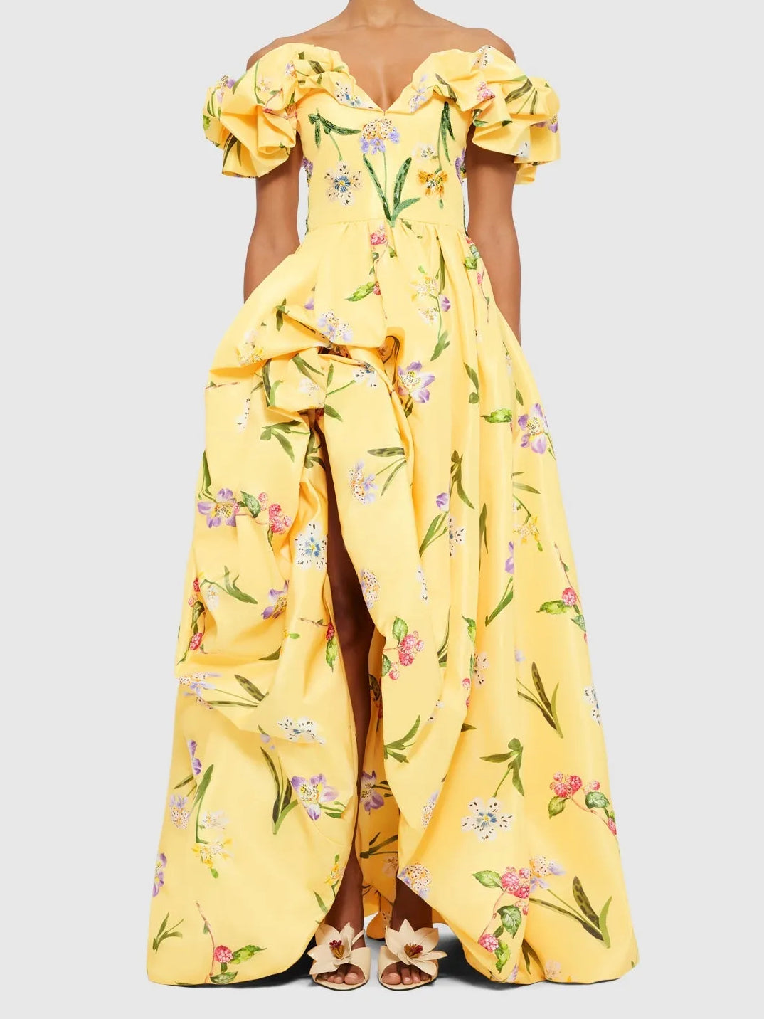 Off-the-shoulder Printed Hem Slit Party Maxi Dress