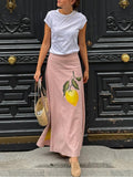 Inspired by the golden sunshine and vibrant landscapes of the Italian coast, this skirt captures the essence of summer with delicate lemon embroidery set against a soft blush pink background. Its fluid, timeless silhouette evokes the Mediterranean breezes and relaxed elegance with its effortless flow.