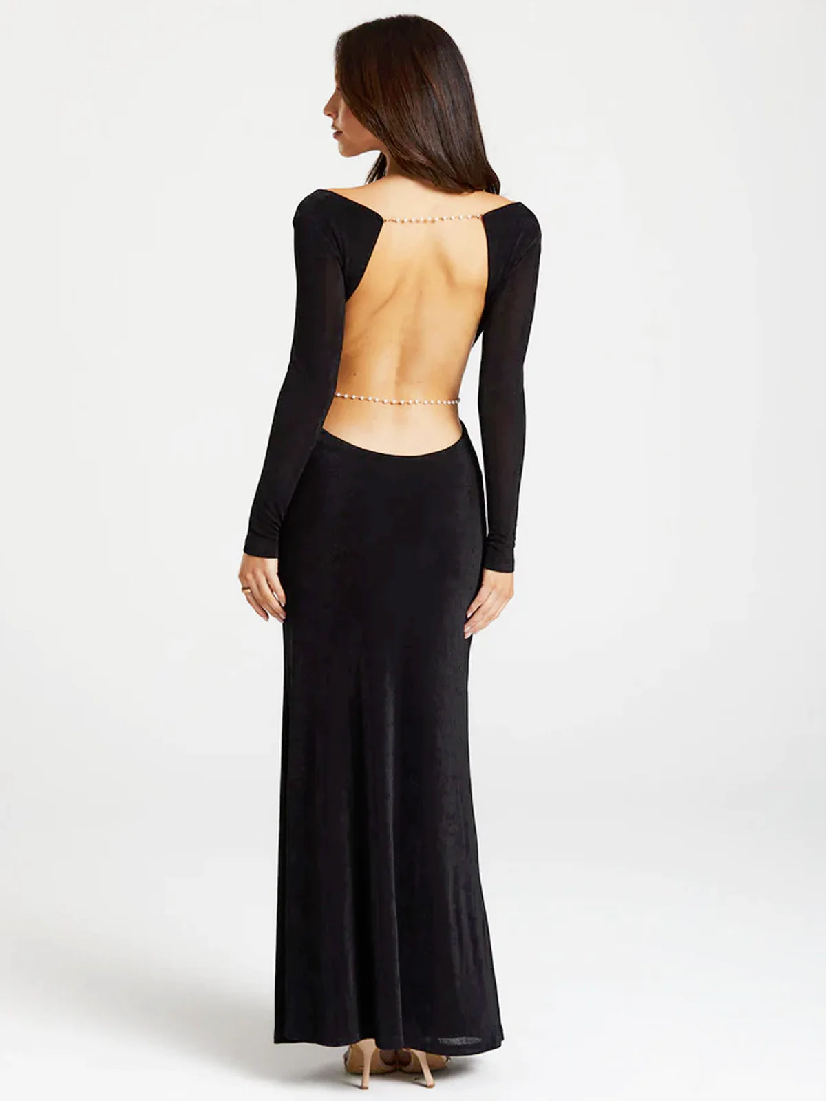 Pearl Chain Backless Fitted Maxi Dress