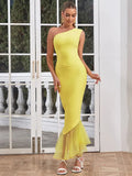 Elevate your evening look with this stunning one-shoulder dress, designed with an asymmetrical hem and mesh panel details. The sleek, bodycon fit enhances your silhouette while the unique fabric combination adds modern sophistication, making it a perfect choice for any chic gathering.