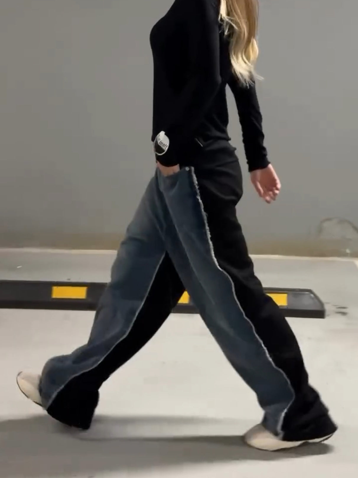 Black Denim Patchwork Raw Edge Jeans
